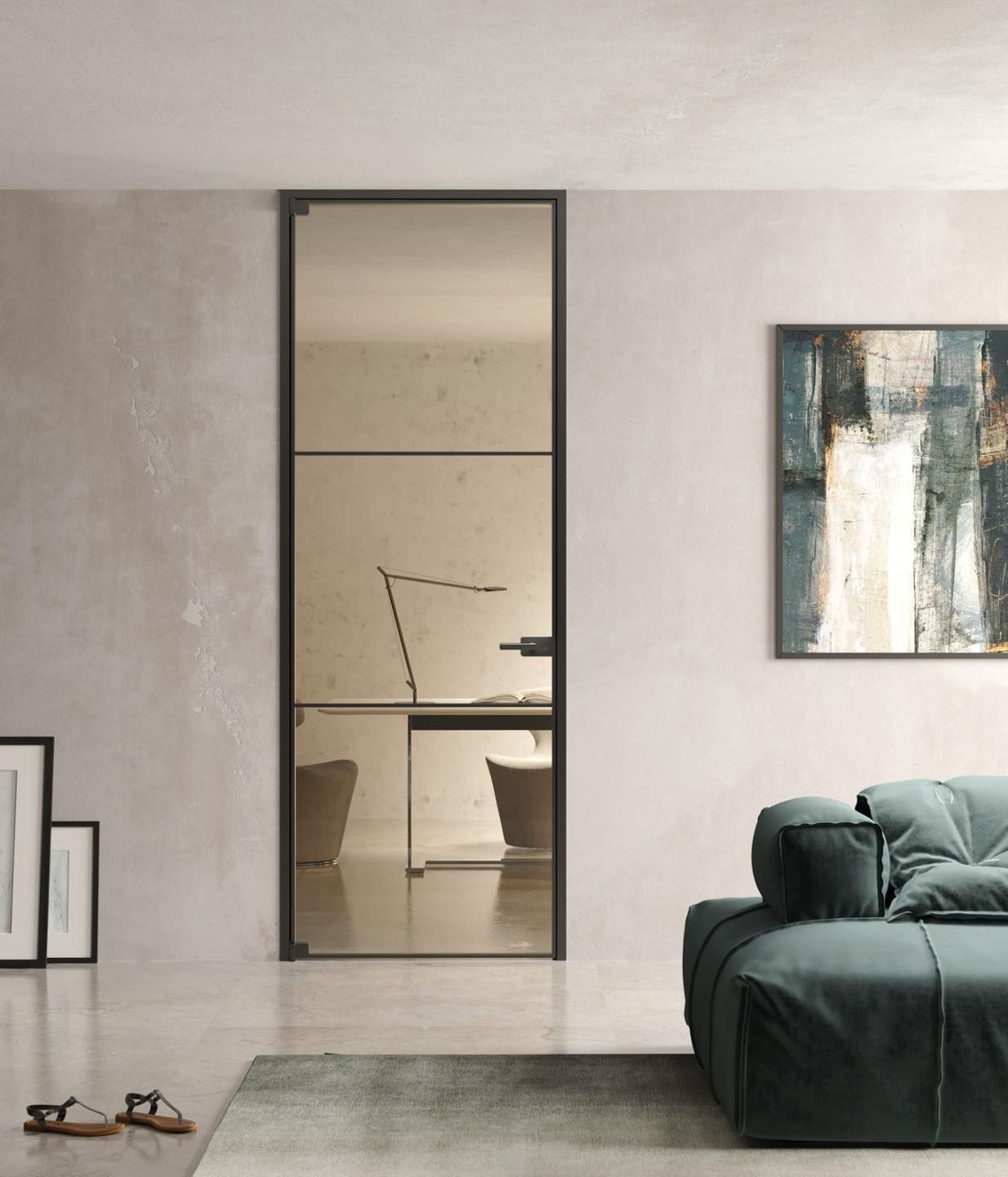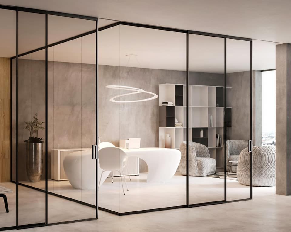 Alla Vetreria Neri Antonio realizziamo porte in vetro in stile industrial uniche nel loro genere con profili sottili per soddisfare le esigenze delle attuali tendenze di interior design. Ci impegniamo a fornire soluzioni eleganti e funzionali per le esigenze di divisione degli ambienti, combinando estetica moderna e tecnologia innovativa.