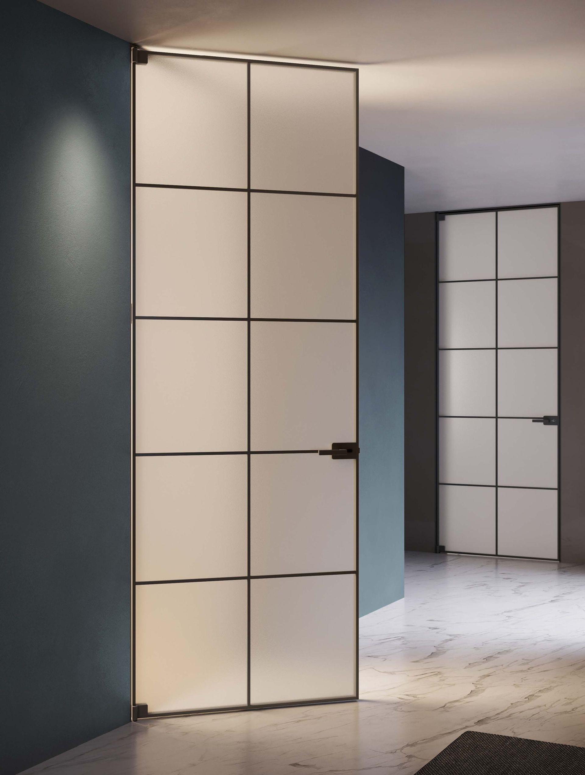 Le nostre porte in vetro sono realizzate su misura in resistente vetro di sicurezza temperato, che offre una forza e una resistenza superiori senza compromettere lo stile. I telai ariosi, sottili ma robusti, creano un look pulito e al contempo accolgono ante di grandi dimensioni che creano un'atmosfera spaziosa. Inoltre, consentono la massima visibilità e forniscono livelli di privacy personalizzabili a seconda delle esigenze.